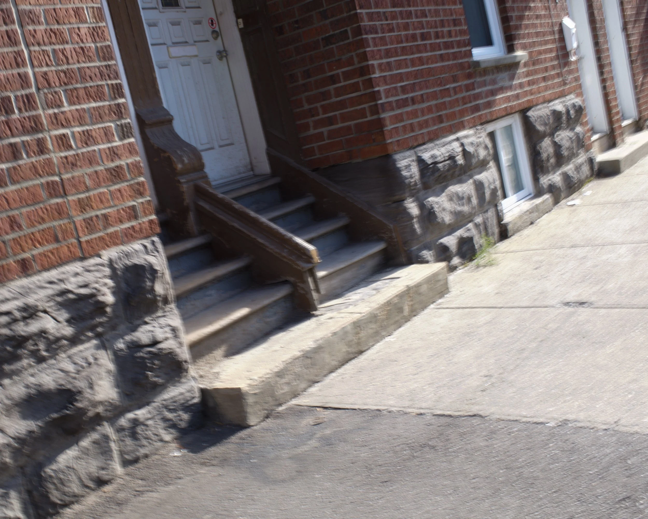en saillie sur le trottoir, une marche; une porte entre-baillée sur un couloir, discret entre les pièces bruyantes. maison bondée. vidée, derrière et après.
